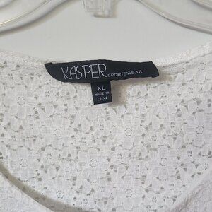 Kasper sleeveless lace shell. Cream colour lace fabric is 68% cotton, 32% nylon. Lined front. Beaded detail at front centre neckline. Size XL, length 22.5 inches back neck to hem. Hand wash, dry flat. Non-smoking home, no pets.