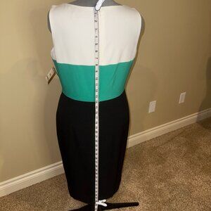 Kasper Dress lined cream green blue sleeveless sheath dress Women's Size 12