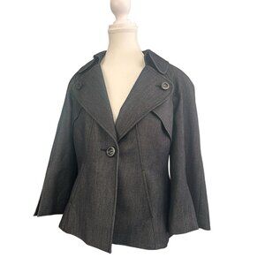 Kasper Grey Swing Blazer/Jacket Split Bell Wide Sleeve Stretch Lined Size 10