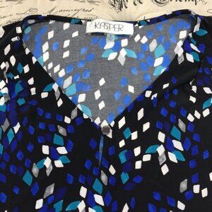 Give your favorite suit a stylish update with this blouse from Kasper, a sleeveless silhouette in an intriguing print rich with color.