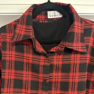 Kate Hewko Black / Red Plaid Long Shirt / Mini Dress w/ attached tank - Size L