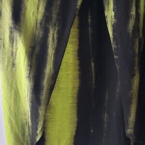 Kate Hewko Black and Neon Lime Long Green Skirt with asymmetrical front hem cutout