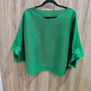 Kate Hewko glam sleeve-textured top in green, one-size-fits-all. It's lightweight, versatile, and adds dimension to any look. With stylish draped sleeves, a boat neck, and ribbed texture and made of polyester. Worn once!