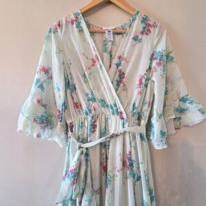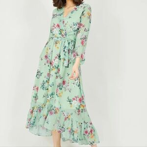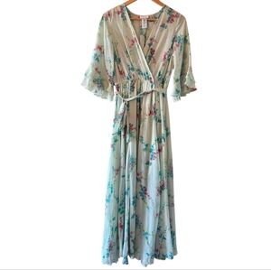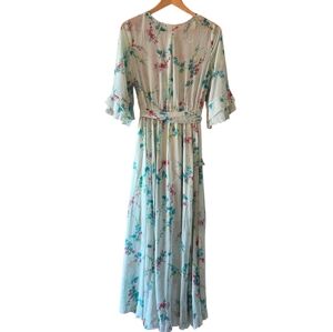 Kate & Lily Floral Print Garden Boho Feminine Maxi Belted Light Green Dress 6