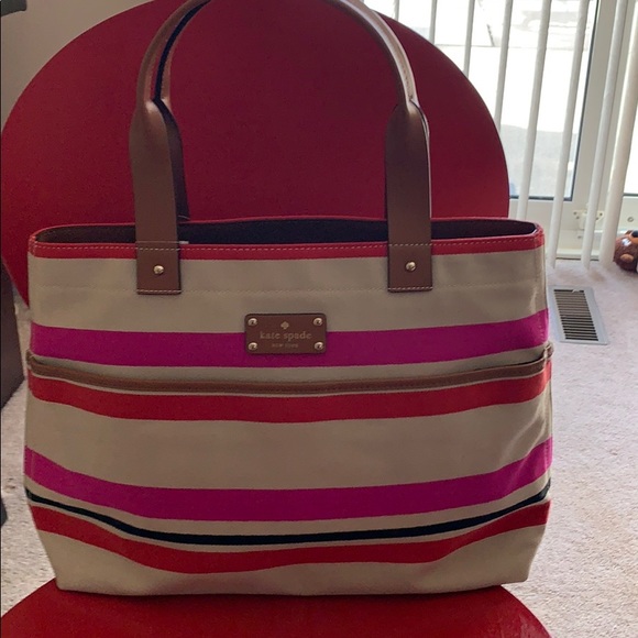 Nwt tote with 2pockets outside at the back a snap pocket at the front lots of room inside with 2 slots and one zip pocket can fit a laptop and other stuff
