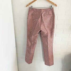 these eye-catching trousers made their first appearance on our fall 2019 runway. jacquard-woven with our flora leopard pattern, this polished pair stays true to its menswear roots with creased legs, quarer-top and welt back pockets. the high rise and wide-leg silhouette add a flattering, feminine touch. pair it with a blazer and a knit polo like we did on the catwalk.