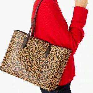 Kate Spade All Day Tote Leopard Brown Leather Shoulder Bag Purse Wristlet Set