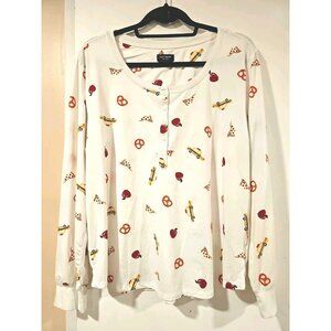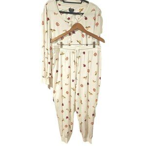 Kate Spade Apple Pretzel Car Pajamas 2 Piece Set XL Ivory Stretch Comfy