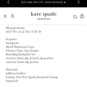 Medium Kate Spade backpack, medium size, black. New with tags. (See picture for measurements)