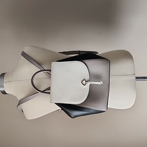 This stylish women's backpack features a sleek black, taupe, and cream design, perfect for any occasion. Its elegant look is complemented by a practical and spacious interior, making it ideal for everyday use.