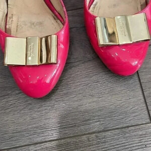 Kate Spade Barbie Pink Leather Block Heels with Golden Bow- US 8- Italy