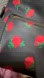 Chic Kate Spade backpack adorned with bold red floral patterns on a sleek black base. Ideal for a stylish look.