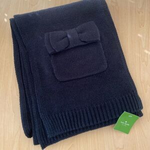 Kate Spade New York Black Pocket Bow Scarf Knitted