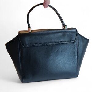 Kate Spade mini bag, black leather handbag, flap bag, bow turn-lock, crossbody, pearl strap, designer purse, compact tote, women’s formal bag, chic evening bag