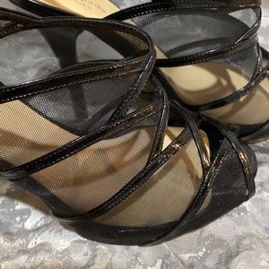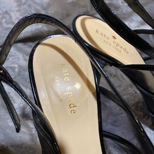 Gorgeous Kate Spade black patent leather high heeled mesh sandals in excellent condition.
