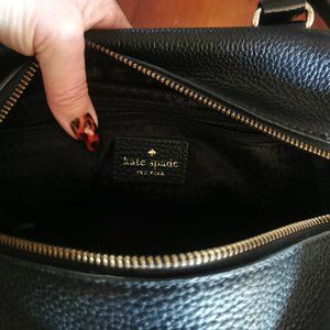 Like new Late Spade Black Pebble Leather Shoulder Bag Handbag Crossbody. Nice size with detachable adjustable shoulder strap. Logo on outside is very slightly faded. Inside has 2 pockets and one zipper pocket. Outside has one zipper pocket. Bag measures 1" wide x 4.5" deep x 8" tall.