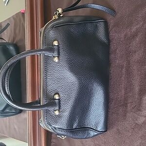 Chic black pebbled leather satchel. Gold-tone hardware. Perfect for daily use.