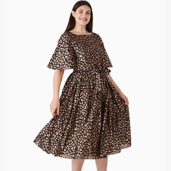 Add a touch of wild to your wardrobe with this black & rose gold leopard print midi dress from Kate Spade.