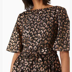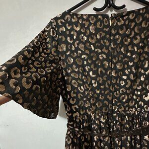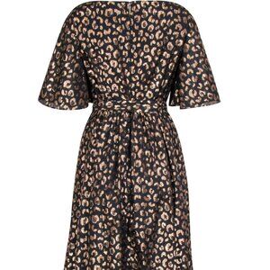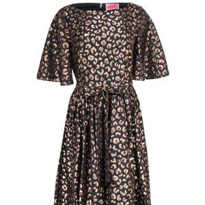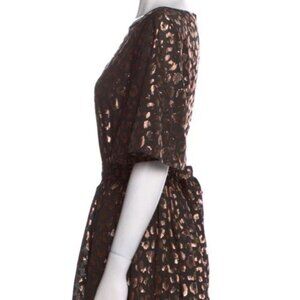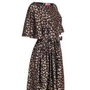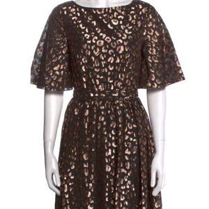 Kate Spade - Black & Rose Gold Leopard Print Midi Dress Sz 6