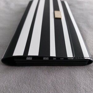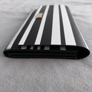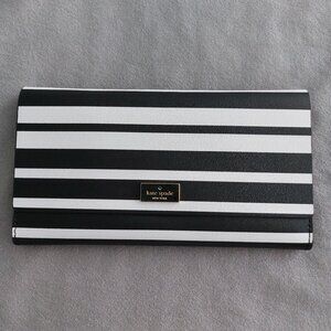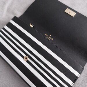 Kate Spade Black & White Striped Leather Wallet – Elegant, Authentic & Like New