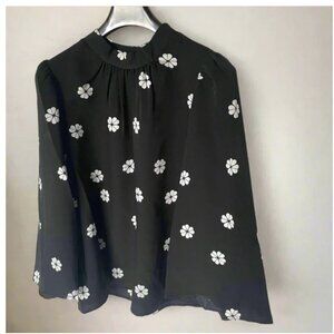 Kate Spade Blouse Womens Black Mock Neck Floral Puff Bell Sleeve Crepe Top