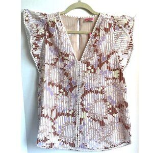 Kate Spade Blouse Womens Small Pink Short Flutter Sleeve V-Neck Boho Floral
