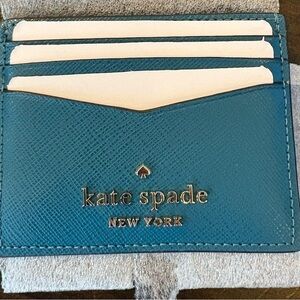 Elegant blue card holder by Kate Spade. Sleek and functional design.