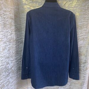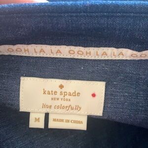 Kate Spade Blue Dark Wash Embroidered Chambray Denim Shirt Size M