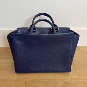 Overall good condition, but has some scratches in leather on the bottom front corners and top opening of bag, pictured above. This is reflected in the price.