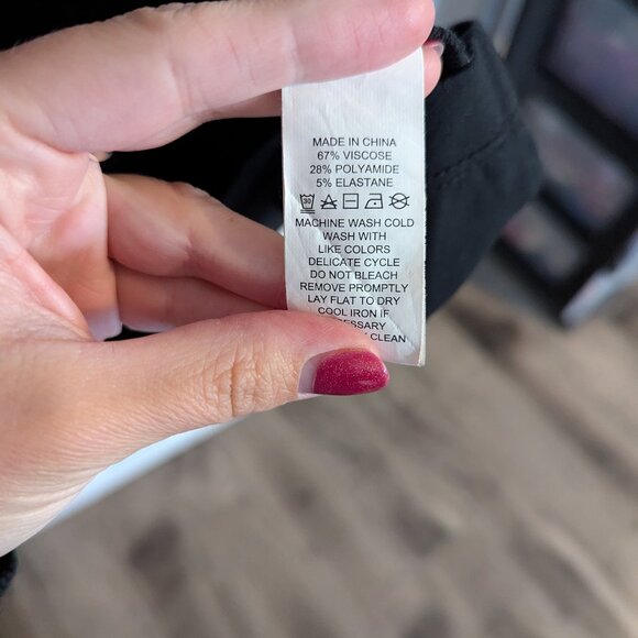 Black 3/4 sleeve fit and flare dress. Stretchy material - 67% Viscose, 28% Polyamide, 5% Elastane.