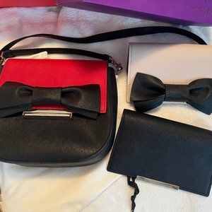 Kate Spade Byrdie Make it Mine black leather crossbody bag purse + 2 bow flaps
