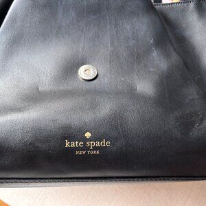 Timeless black leather authentic Kate Spade hand and shoulder bag with envelope-style flap and gold hardware. Classic structured silhouette.