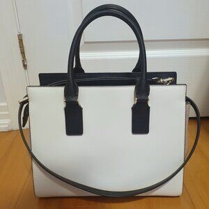 Kate Spade Cameron Medium Satchel in the perfectly classic neutral colours of white, black, and nude pink.