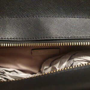 The bag is made of saffiano leather, and the interior is lined with a beautiful light pink with spades fabric.