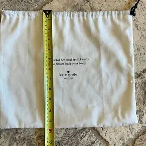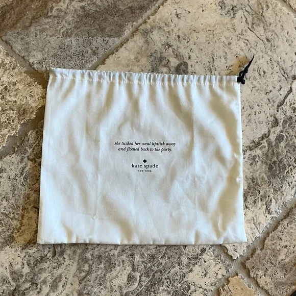 Elegant cream drawstring bag with printed quote. Ideal for accessory storage.