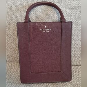 Elegant shoulder bag in deep red. Features sleek design and gold logo detail.