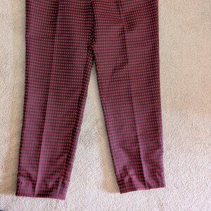 These Kate Spade Avery Diamond Jacquard Ankle Trousers feature a stylish black and red diamond print, offering a playful yet sophisticated look. Crafted from polyester, they boast a comfortable straight, slightly tapered leg and a flattering ankle-length cut. Perfect for various occasions, these pants combine a unique pattern with a versatile silhouette, making them a standout addition to any wardrobe