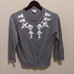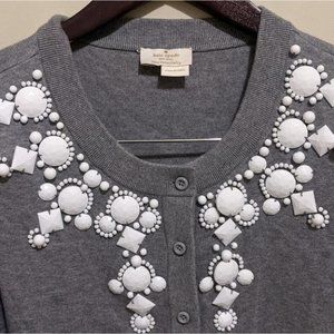 Beautiful Gray Kate Spade cardigan. Bead embellishments on the front. 60% cotton, 35% silk, 5% cashmere. Size L. 3/4 sleeves.