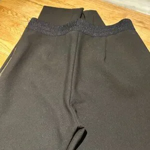 Straight leg, black dress pant with side gold zipper and rouched elastic waist band