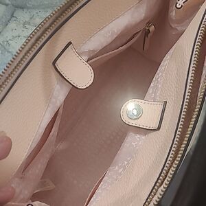 Great everyday handbag with multiple compartments for the organized woman. Soft leather. Classic Kate Spade Pink ebble tones black contrasting handles and trim