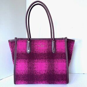 Kate Spade Ella Plaid Tweed Tote Medium Bright Rose Black Shoulder Bag