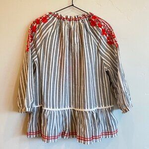 Kate Spade Embroidered Cotton Peasant Top Womens Medium VNeck Stripe White Red