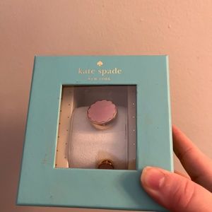 Approx 8 year old Kate Spade Fitness tracker. Scalloped pink center and rose gold band. Never used, in original box. Needs new battery to work.