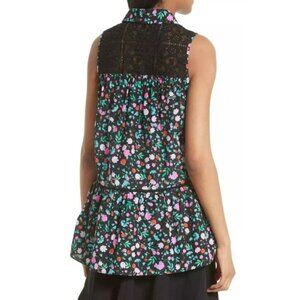 Kate Spade Floral Silk Cotton Blouse Womens Large Sleeveless Green Lace Peplum