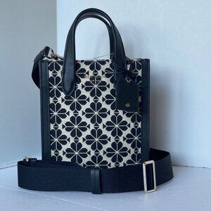 Kate Spade Flower Jacquard Manhattan Mini Tote Blue Leather Crossbody Bag