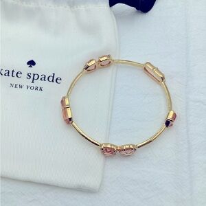 Chic gold bracelet by Kate Spade. Features elegant rose accents. Ideal for any occasion. In mint condition and 2 and 1/2” across the inside. Comes with dust bag.