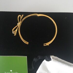 Chic gold bracelet featuring a stylish bow accent. Perfect for any occasion.