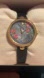 New in original box, never worn. Works great as shown in uploaded video. Watch screen still has protection sticker on. Includes original manual as well. Chic watch with a black strap and gold case. Features vibrant floral design on the dial.