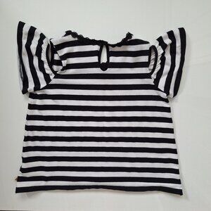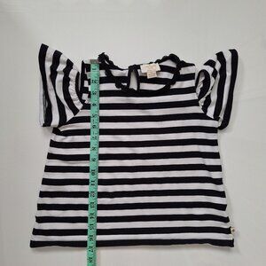 Kate Spade Junior Black and White Striped Cold Shoulder Tee