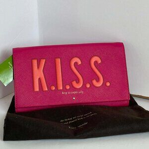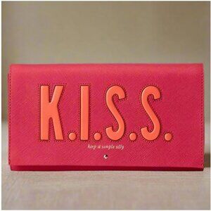 TAGS: Kate Spade, Kiss Tally, Pink Clutch, Leather Clutch, Vintage Bag, Love Birds, Foldover Bag, Designer Handbag, Statement Clutch, Romantic Style, Collectible Purse, Evening Bag, Retro Accessories, Date Night
